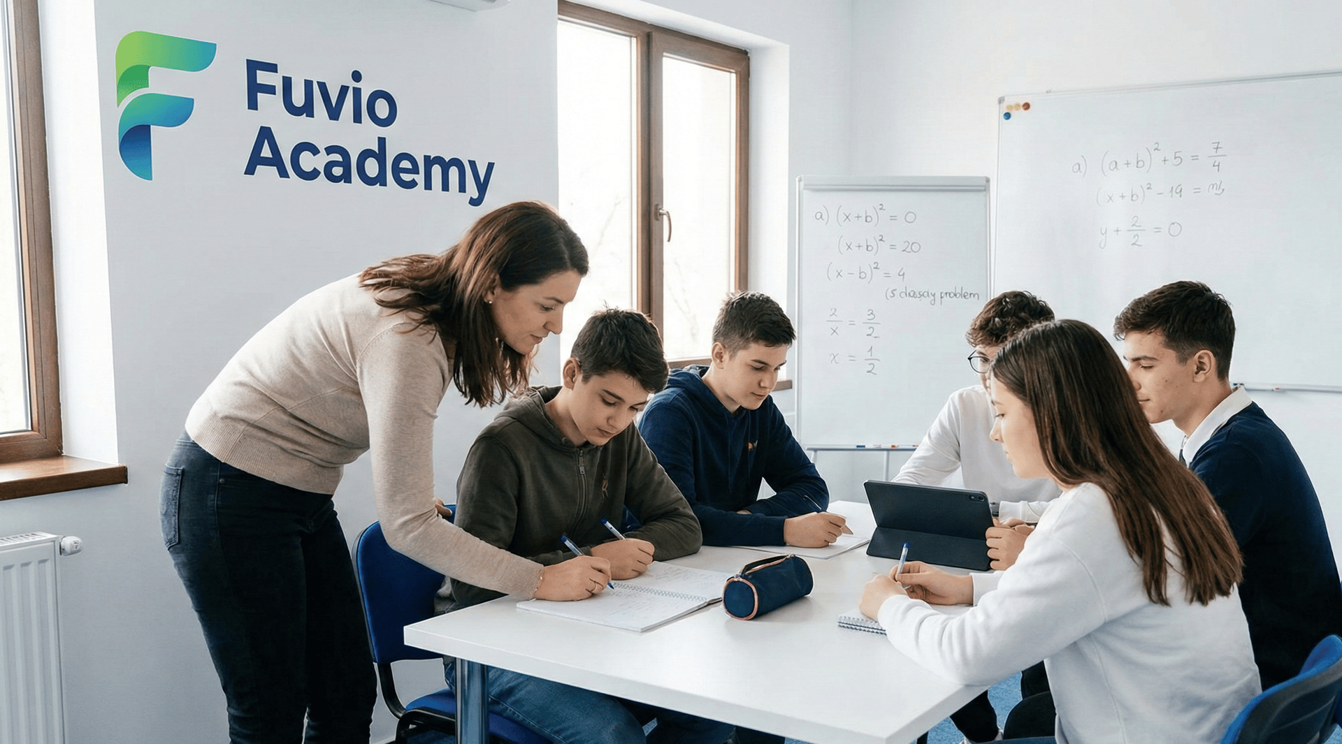 Hai să descoperim împreună fascinația matematicii la Fuvio Academy! Înscrie-te astăzi și fii parte a unei comunități de elevi dornici să-și dezvolte abilitățile matematice și să obțină rezultate extraordinare. Profesori dedicați, metode moderne de predare și o atmosferă prietenoasă te vor însoți în călătoria ta către succes. Înscrie-te la Fuvio Academy sau testează o sedință gratuită și pregătește-te să te transformi într-un campion al matematicii!